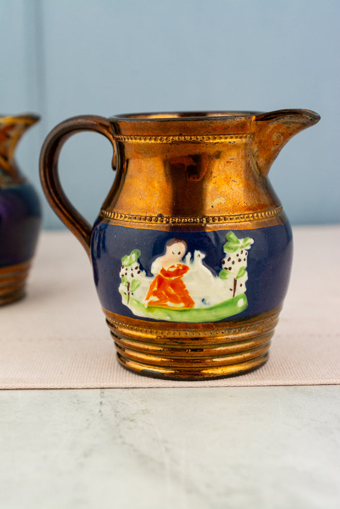 Antique English Copper Lusterware Pastoral Creamer | P.O.S.H.